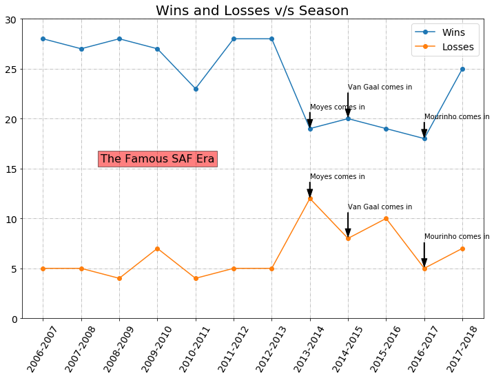 Data visualization : [OC] How Manchester United fared in recent years with the new managers coming in from 2013?
