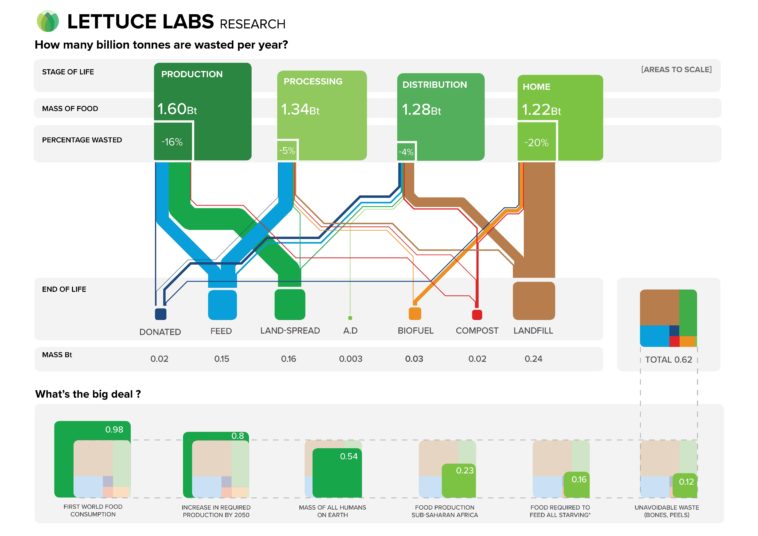 Data visualization : [OC] How many billion tonnes of food waste is produced in the developed world and where does it go?