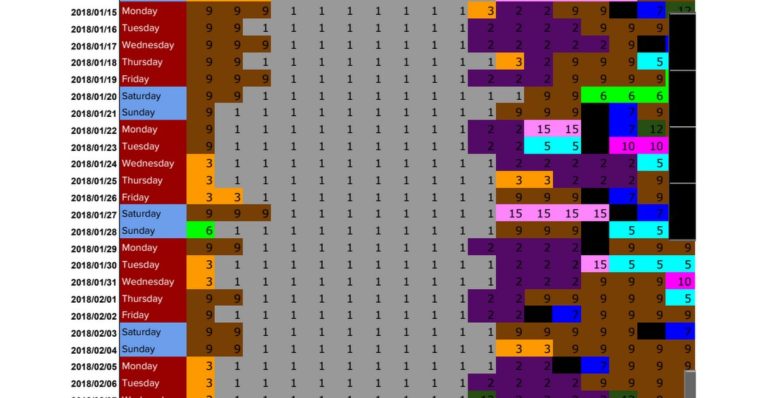 Data visualization : [OC] I also recorded every hour of my 2018! Cheers u/kewpit for the template