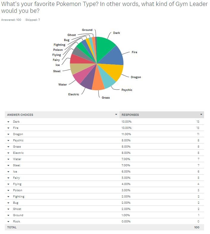 data visualization : [OC] I asked 100 people what their fave Pokemon type and Pokemon region were (Source: SurveyMonkey)