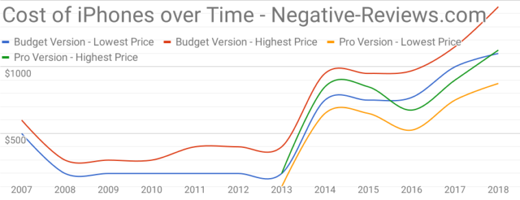 Data visualization : [OC] iPhone prices over time (data: Wikipedia)