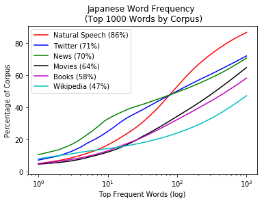 Data visualization : [OC] Japanese Word Frequency Using Top 1000 Ranked Words by Corpus