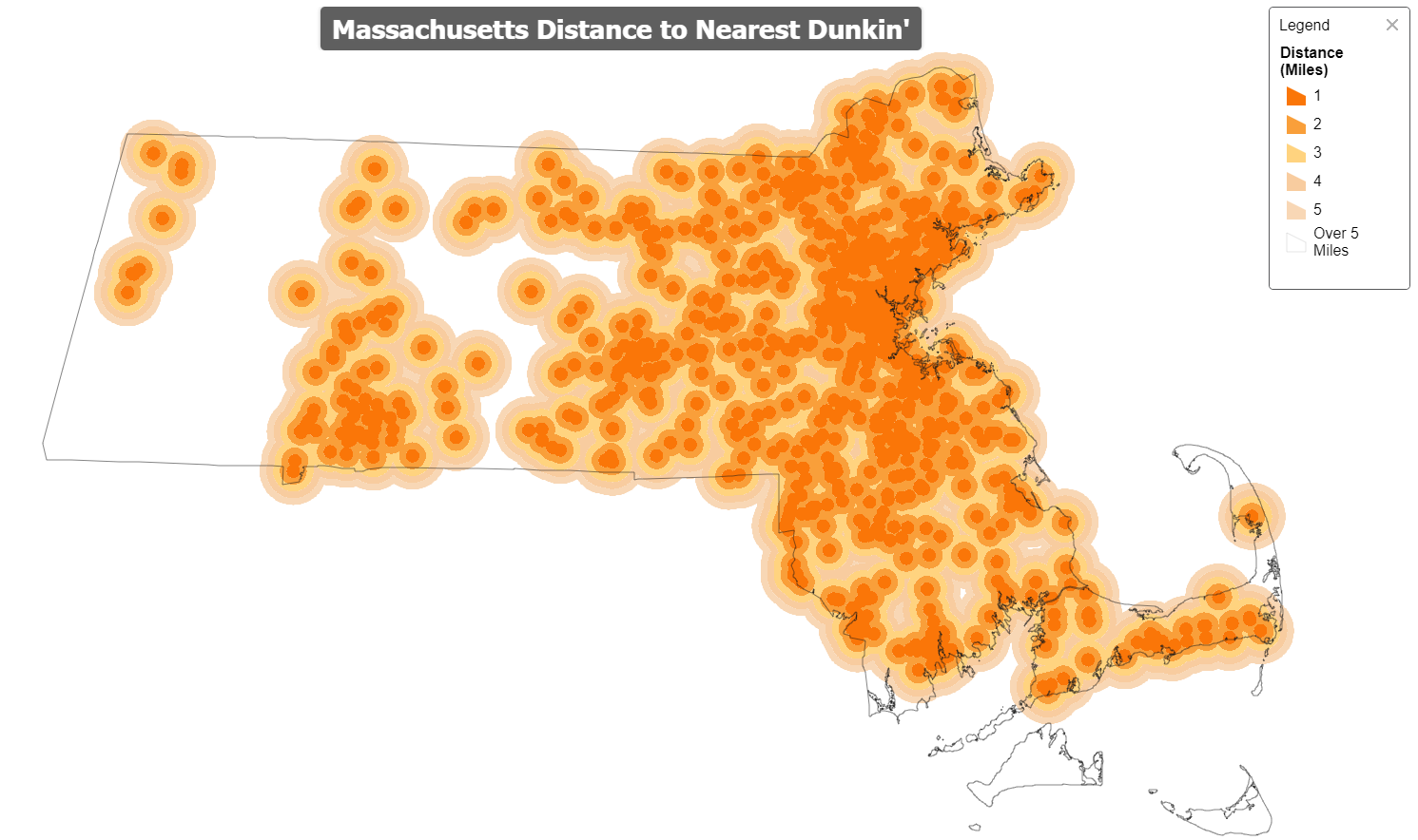 Data visualization : [OC] MA – Distance to Nearest Dunkin’