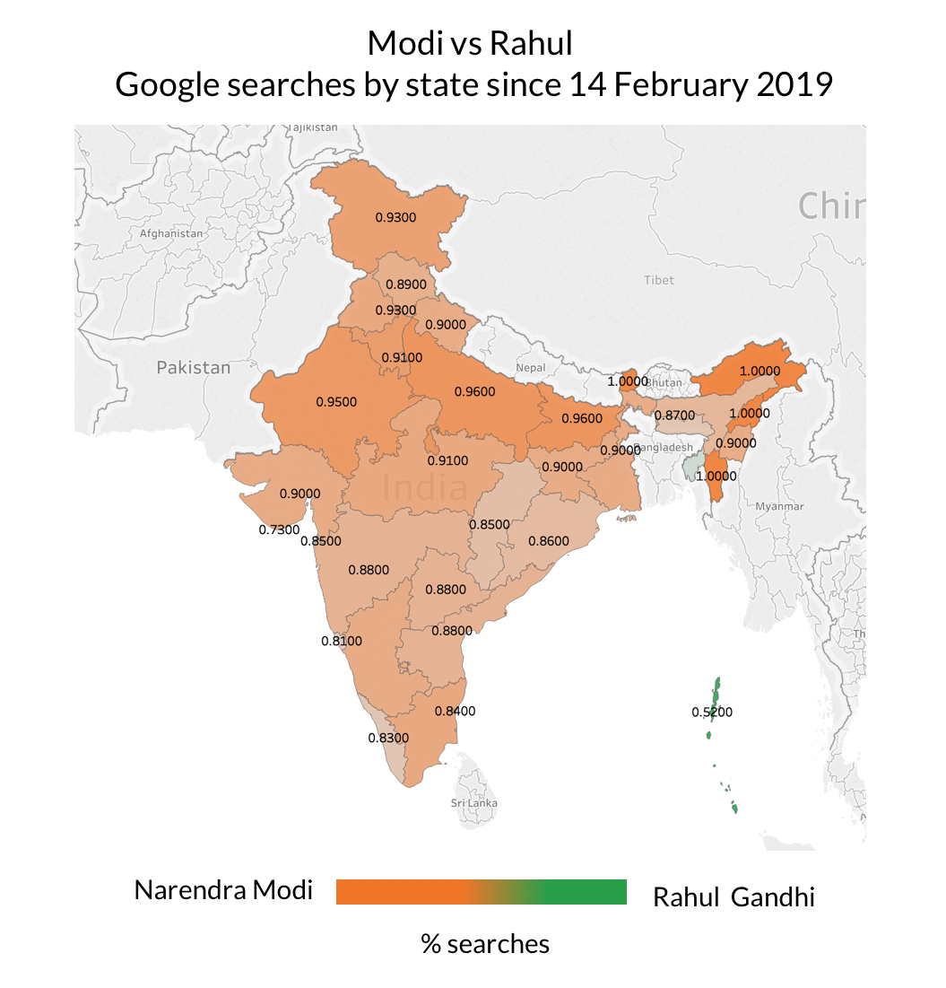 Data visualization : [OC] Modi vs Rahul: Who is more popular on Google?
