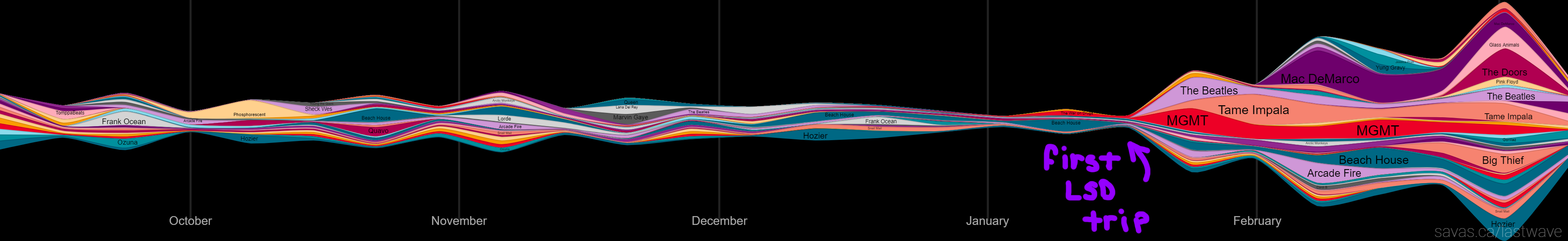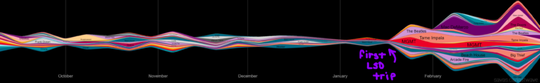 Data visualization : [OC] Music Listening Habits Before and After LSD Trips