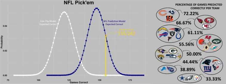 Data visualization : [OC] My 2018 NFL pick’em results vs expected