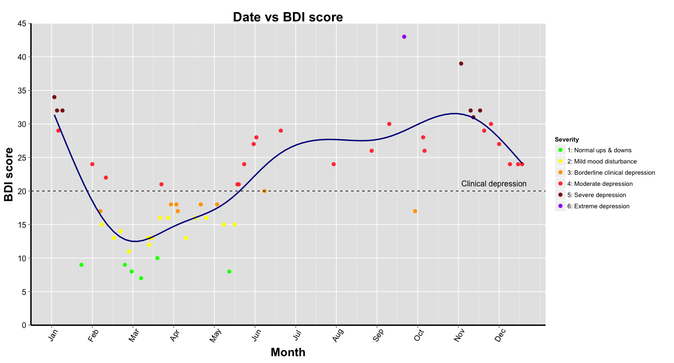 Data visualization : [OC] My mood over the year 2018 as measured by the Beck Depression Inventory