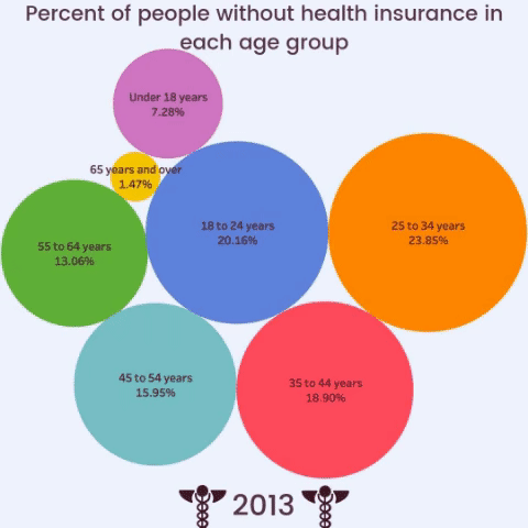Data visualization : [OC] Percent of People Without Health Insurance Per Age Group