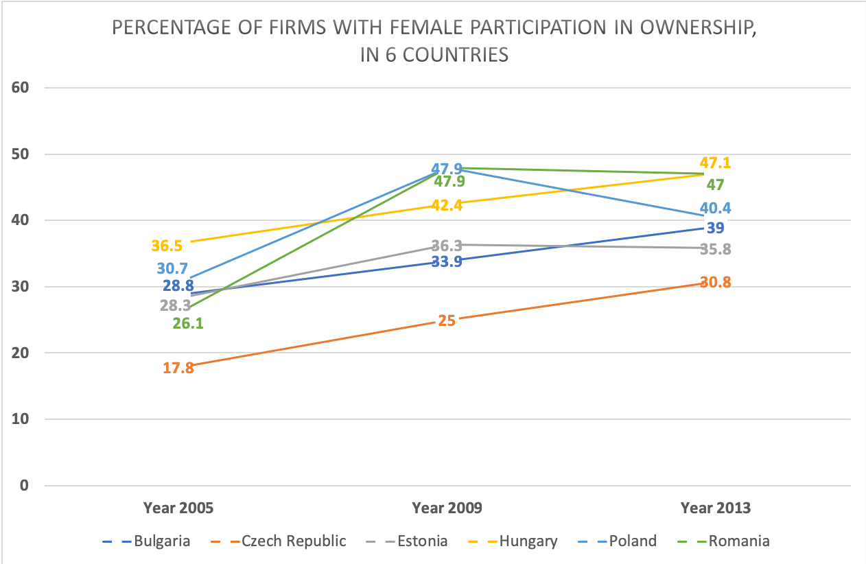 Data visualization : [OC] Percentage of Firms With Female Participation in Ownership, in 6 Countries