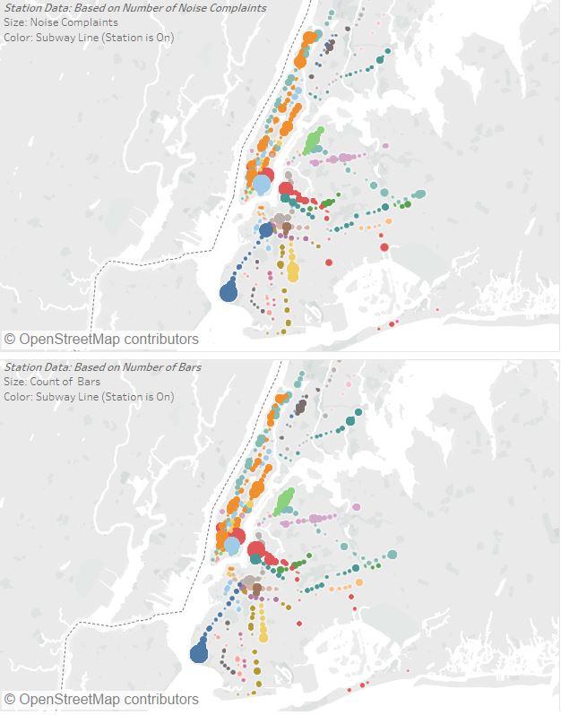 Data visualization : [OC] Picking a Subway Line to Maximize Partying in NYC Based on Noise Complaint Data
