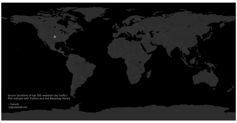 Data visualization : [OC] Server location visualization of top 500 websites (by traffic)
