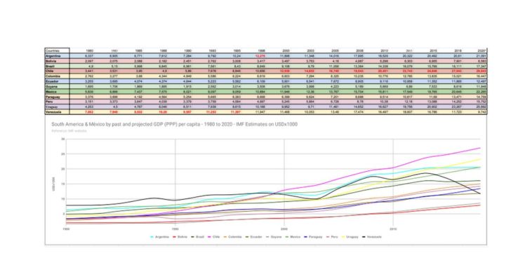 Data visualization : [OC] South America & Mexico by GDP (PPP) per capita – 1980 to 2020 – IMF estimates