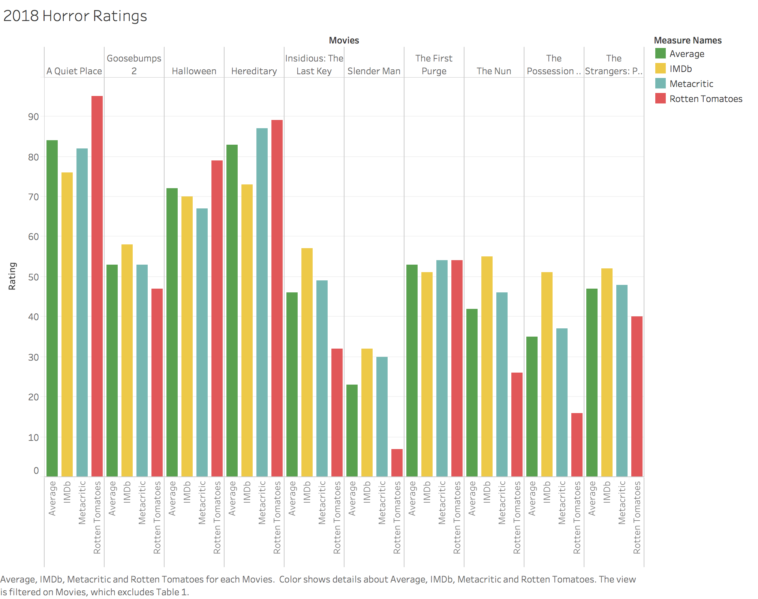 Data visualization : [OC] The highest grossing horror films in 2018 compared to their ratings on various websites