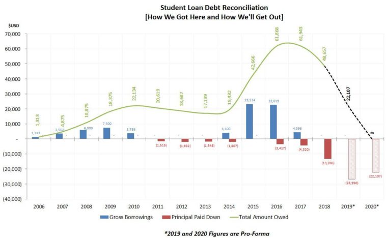 [OC] The Life Cycle of my Wife’s Student Loan Debt