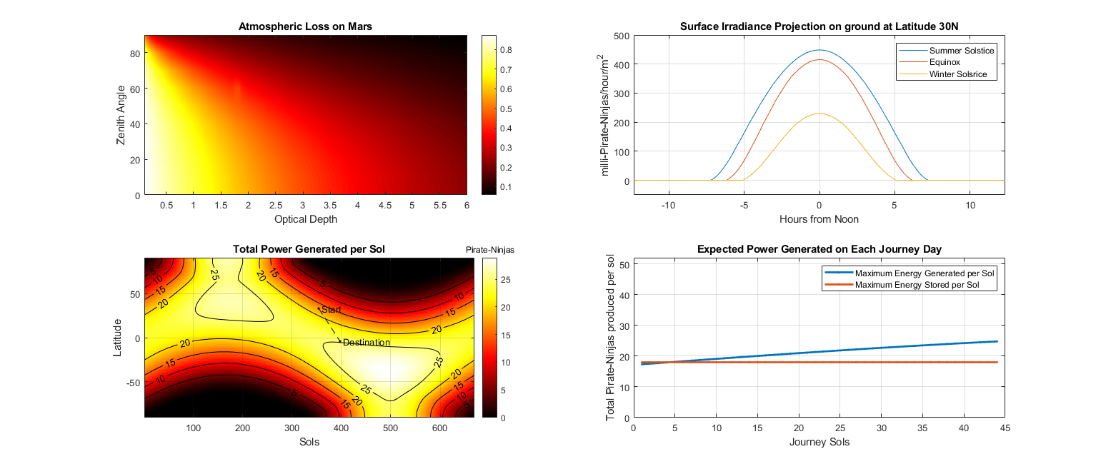 data visualization : [OC] [The Martian] How many Pirate-Ninjas Mark Watney produced every mars day on his journey to Schiaparelli’s Crater assuming 28m^2 of GaAs PV Cells