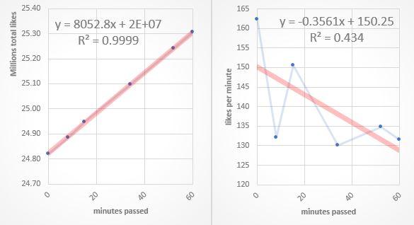 Data visualization : [OC] The most liked photo on Instagram is now a picture of an egg. This is how fast it gained likes. 8k likes per minute.