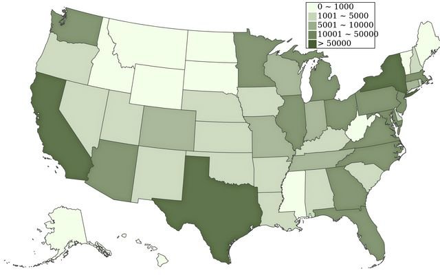 Data visualization : [OC] The Number of H1B Visa Applicants to US in 2018
