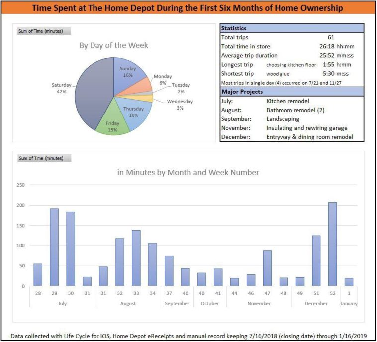 Data visualization : [OC] Time Spent at The Home Depot in the First Six Months of Home Ownership