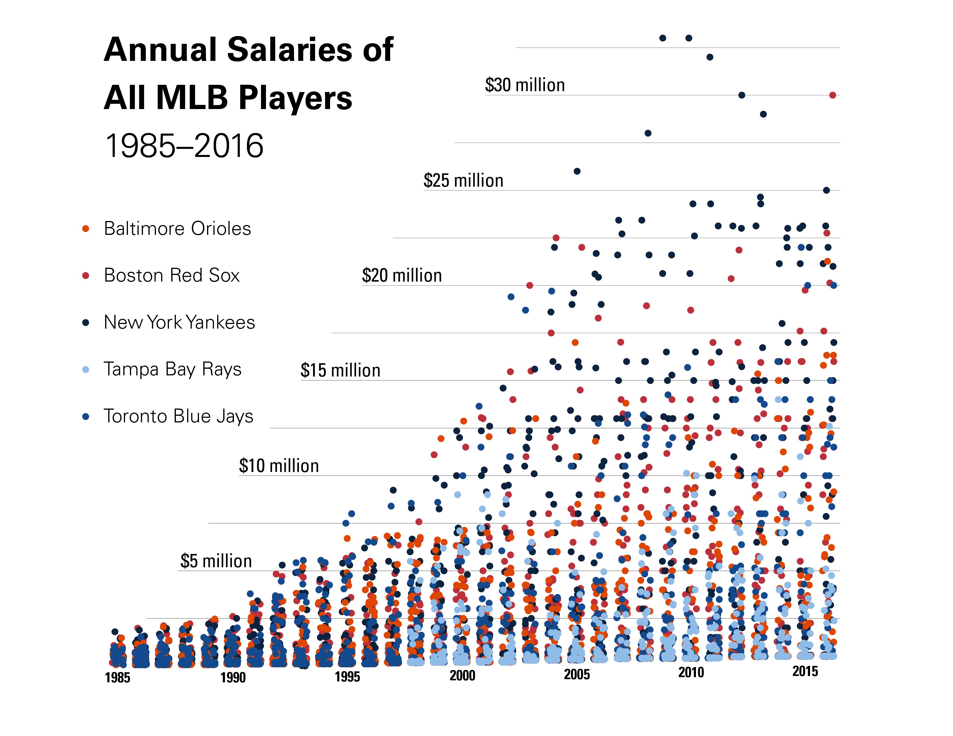 [OC] Visualizing MLB Player Salaries 1985-2016 (work in progress, feedback appreciated)
