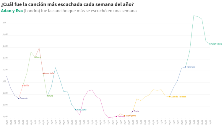 Data visualization : [OC] Weekly most listened song in Argentina