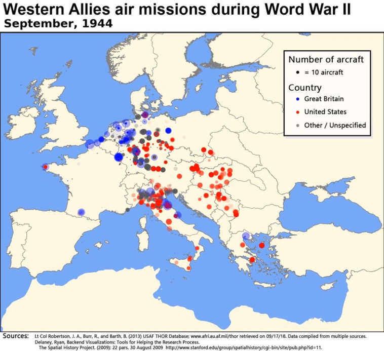 Data visualization : [OC] Western Allies air missions through World War II, with period-accurate borders.