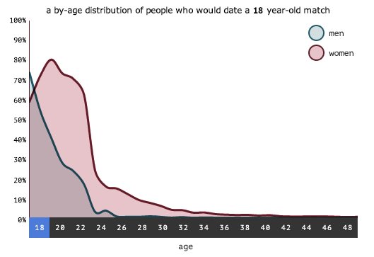 Data visualization : OkCupid graph: “the median 30 year-old man spends as much time messaging teenage girls as he does women his own age”
