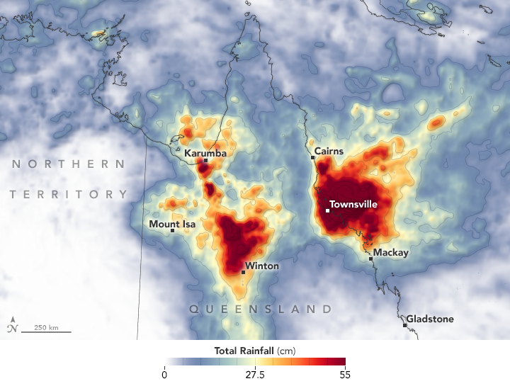 Data visualization : Parts of Australia received 55 cm (22 in) of rain over the past two weeks, prompting flood warnings in several areas [OC]