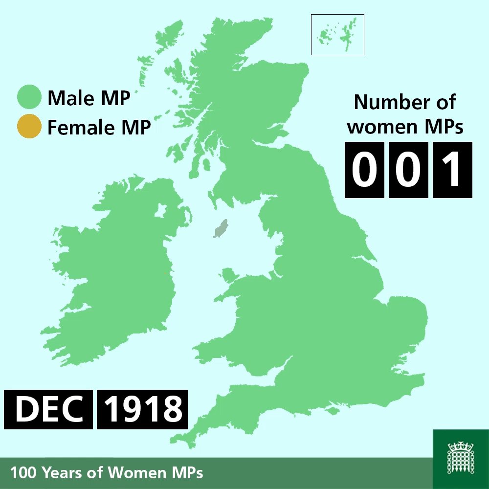 Parts of the UK with women Members of Parliament over the last 100 years [OC]
