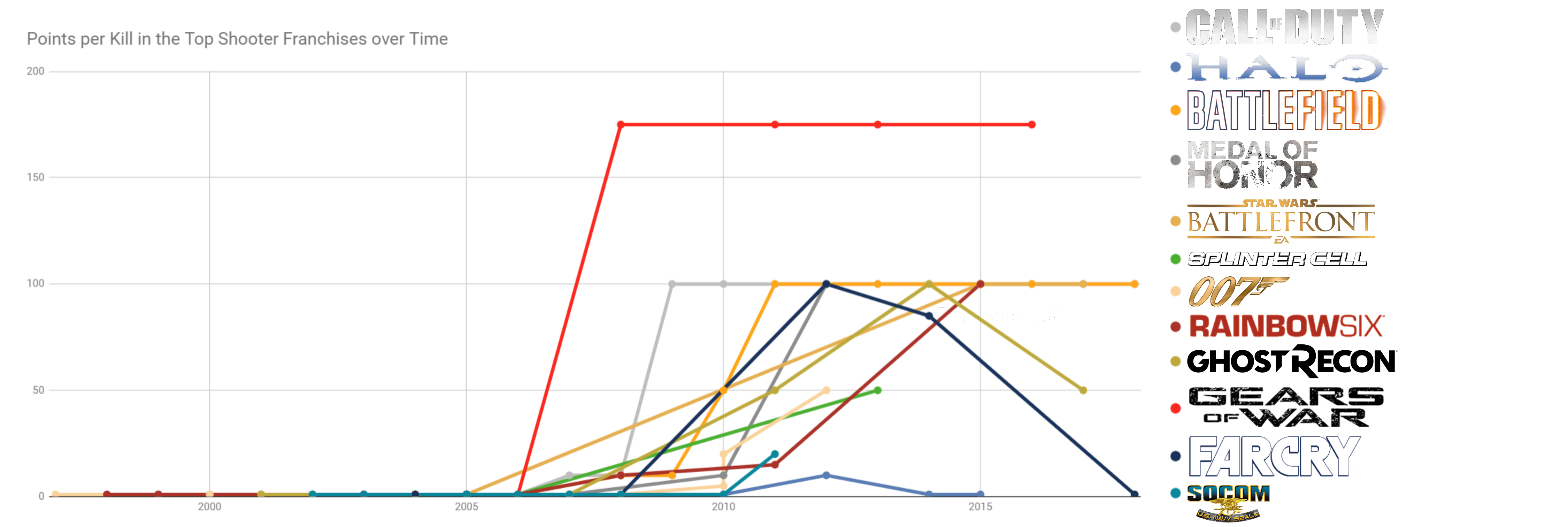 Data visualization : Point Creep in the Top Shooter Franchises [OC]