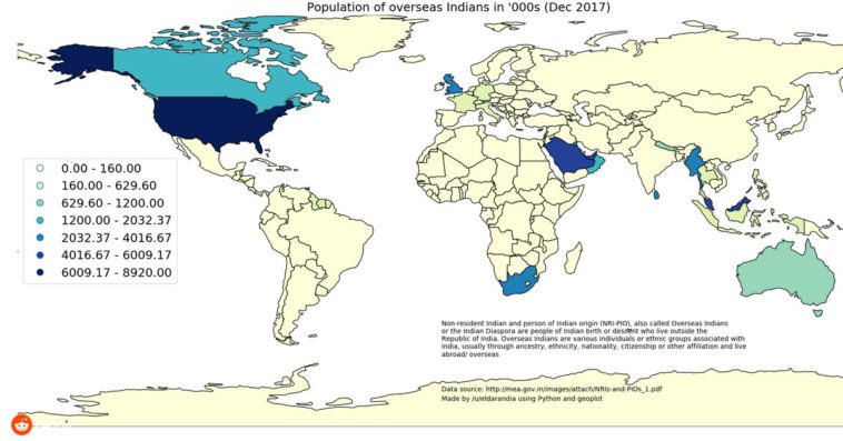 Data visualization : Population of overseas Indians according to Indian Ministry of External affairs data