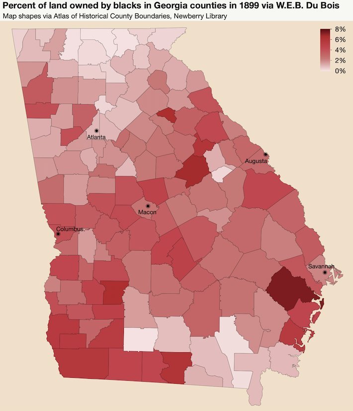 Data visualization : Re-imagining Du Bois’s 1900 map of Georgia land holdings for Black Data Project/Black History Month [OC]