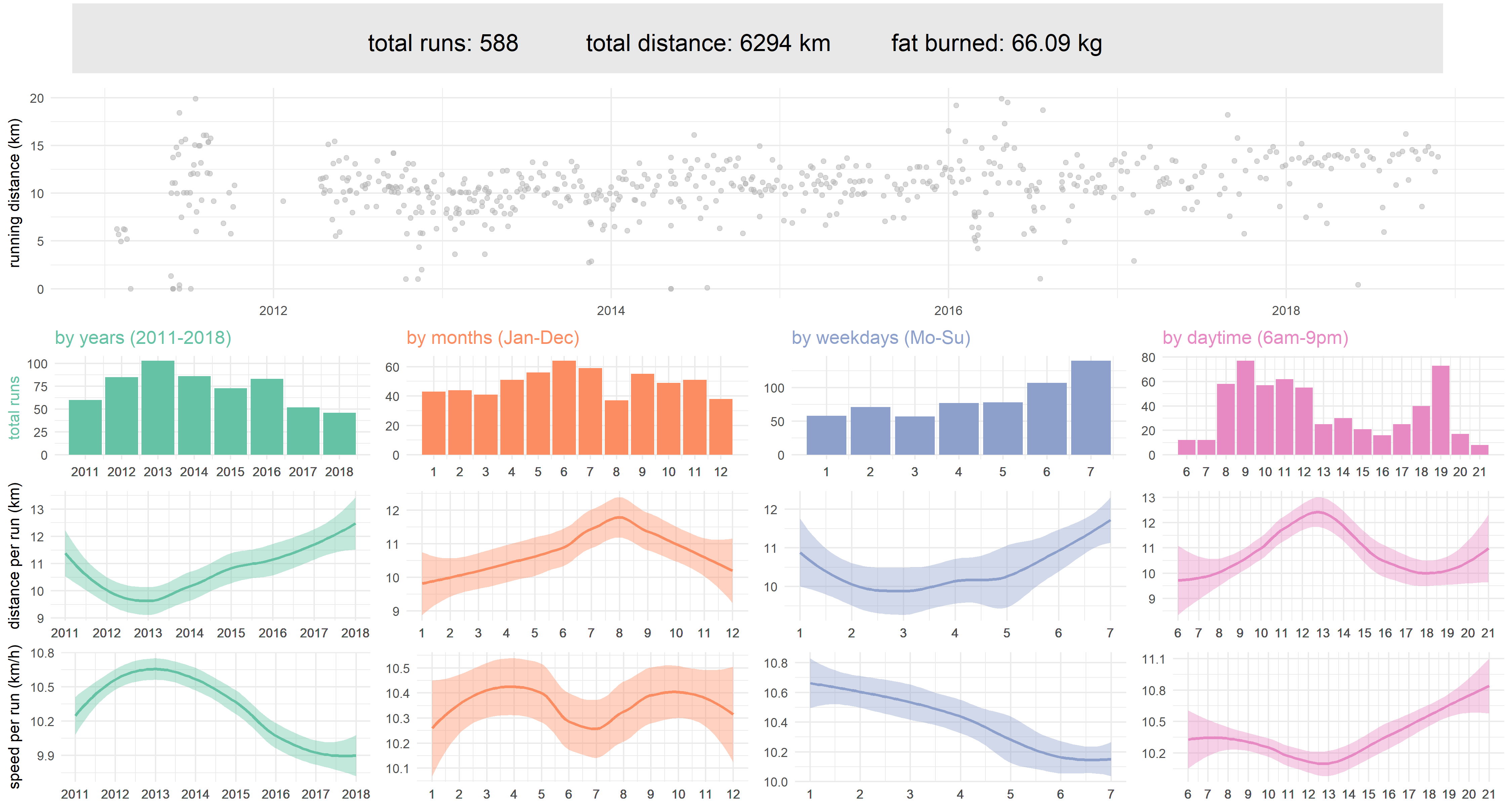 Data visualization : Running performance dependent on time series [OC]