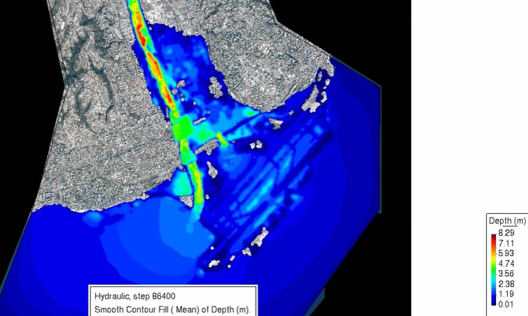 Data visualization : Simulating a flood wave through the City of Nice [OC]