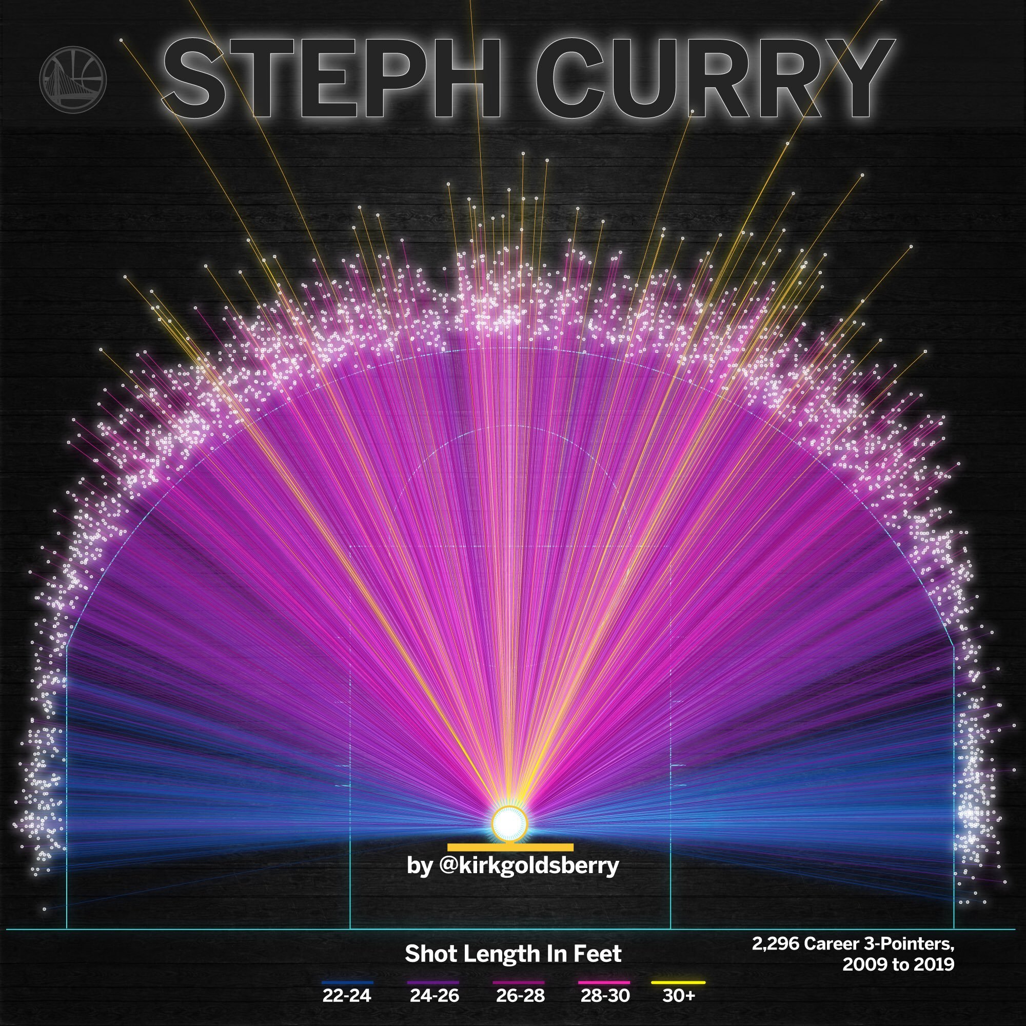 Data visualization : Steph Curry’s career 3 point shot range – via twitter