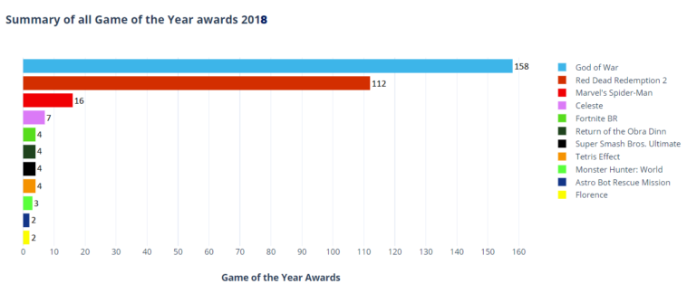 Data visualization : Summary of many Game of the Year awards 2018 [OC]