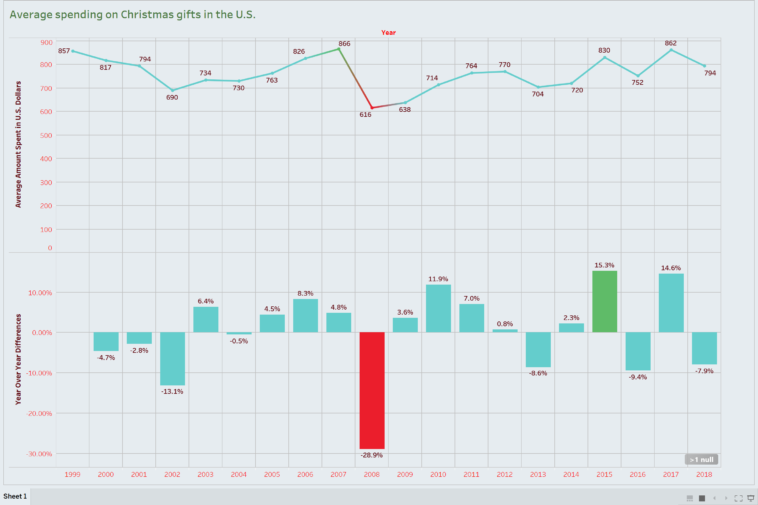 Data visualization : The average amount spent on Christmas gifts in the U.S. [OC]