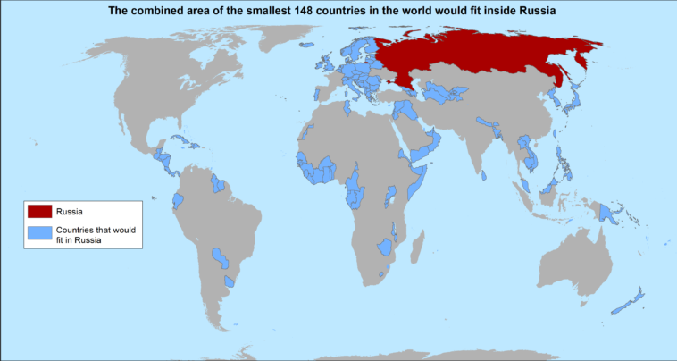 The combined area of the smallest 148 countries in the world would fit inside Russia [OC]
