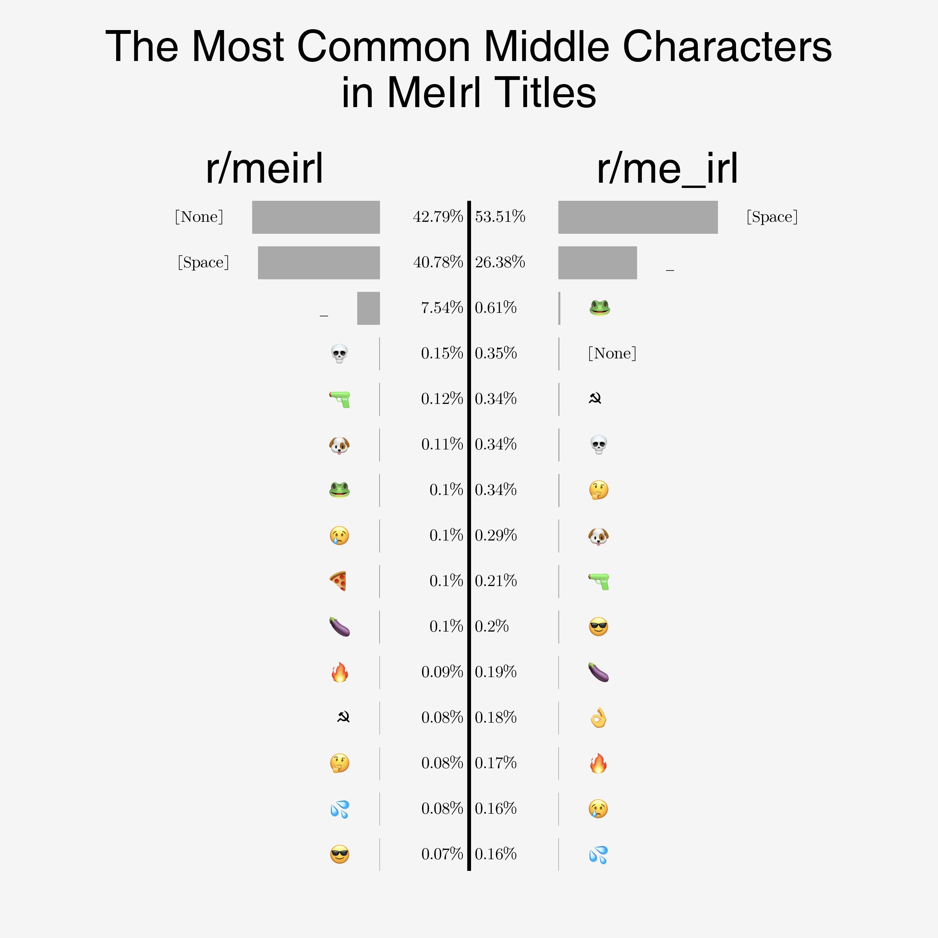 Data visualization : The Most Common Middle Characters in MeIrl Titles. [OC]