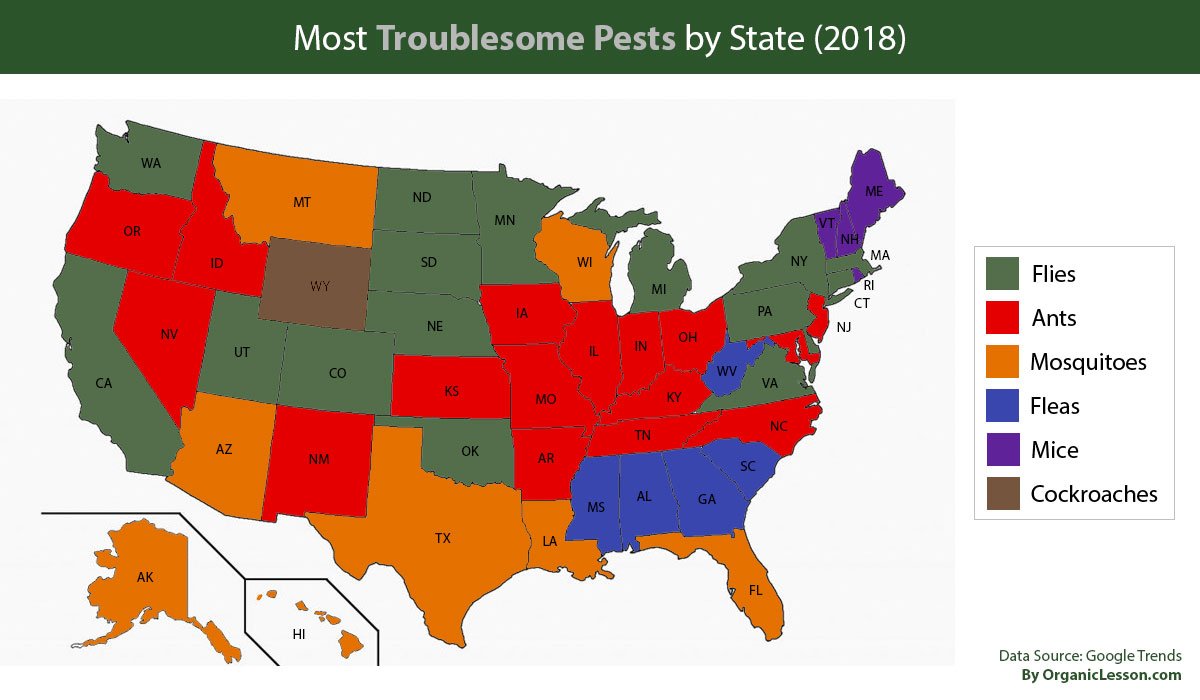 The Most Searched Household Pest in Each State in 2018 [OC]