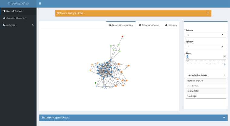 data visualization : The West Wing TV Series Network Visualization and Character Clustering [OC]