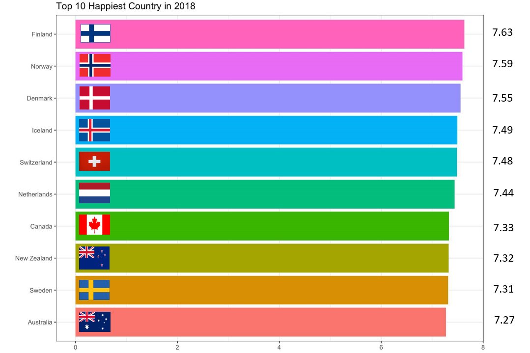 Data visualization : Top 10 Happiest country in 2018