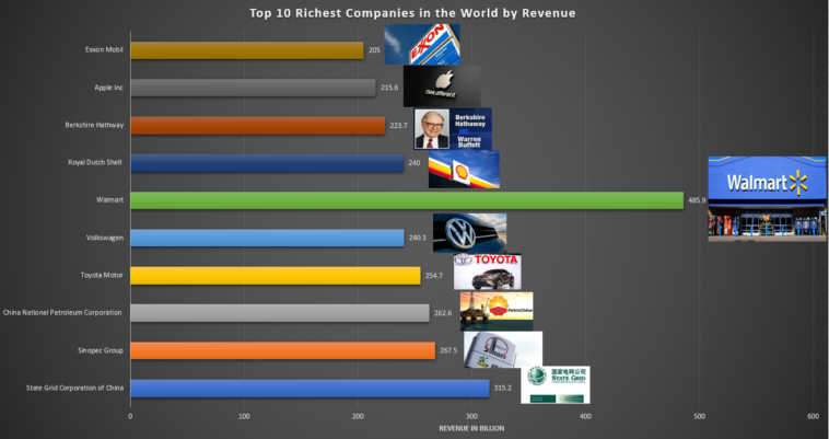 Data visualization : Top 10 Richest Companies in the World by Revenue [OC]