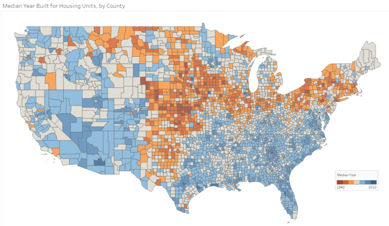 Data visualization : Updated: Median Year Built for Housing Units, by County [OC]