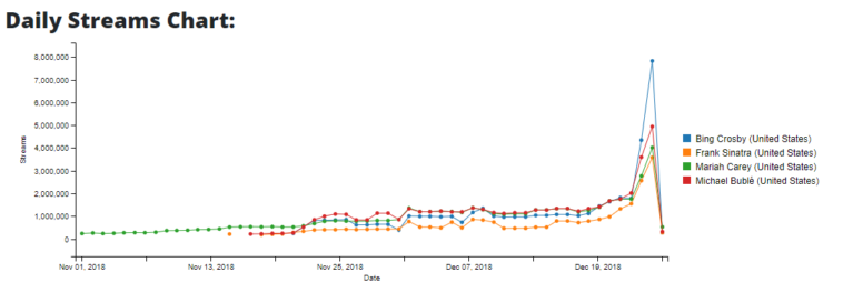 Data visualization : USA Spotify Streams of Christmas Artists (Interactive Site in comments) [OC]