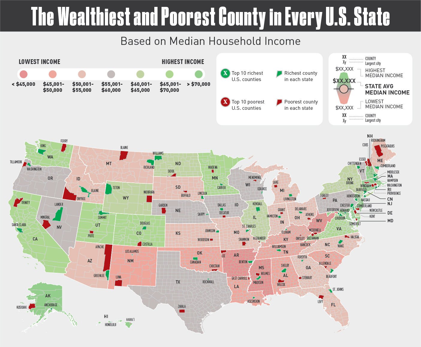 Visual Representation of Each U.S. State’s Wealthiest and Poorest County
