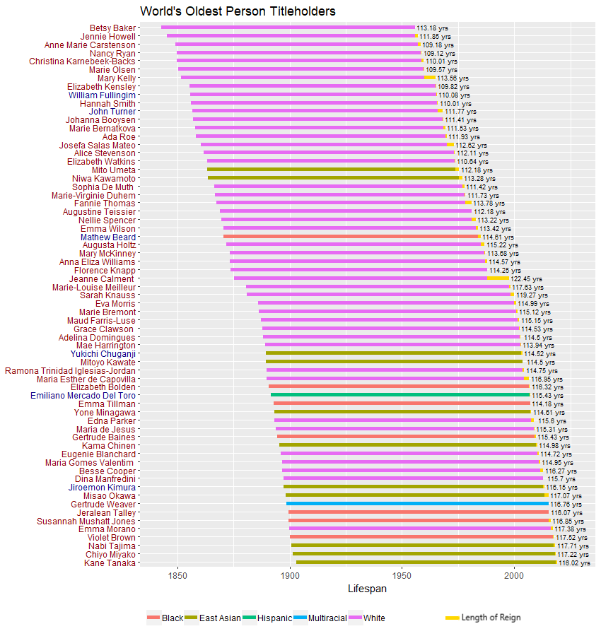 Data visualization : World’s Oldest Person Titleholders, 1955-Present [OC]