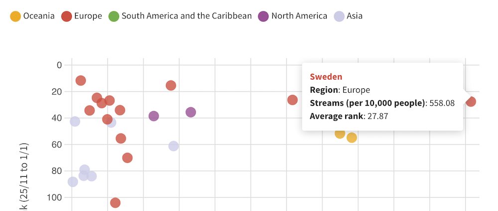 Data visualization : Xmas obsession by country based on Spotify streams of “All I want for Christmas…”. What’s going on in Sweden?!