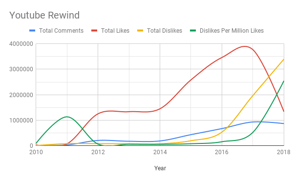 Youtube Rewind Likes vs. Dislikes Over Time [OC]