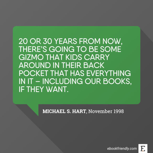 💬 20 or 30 years from now, there’s going to be some gizmo that kids carry around in their back pocket that has everything in it – including our books, if they want. – Michael S. Hart, the creator of the first ebook in the world More