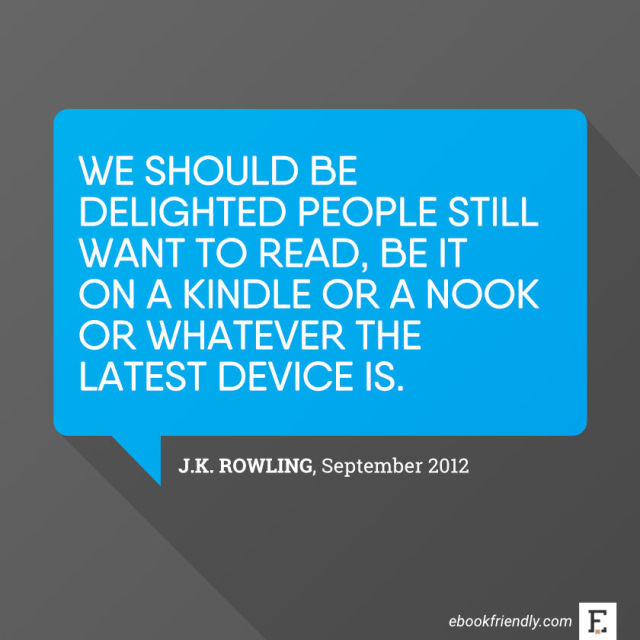 📣 J.K. Rowling: “Honestly, I think we should be delighted people still want to read, be it on a Kindle or a Nook or whatever the latest device is.” More